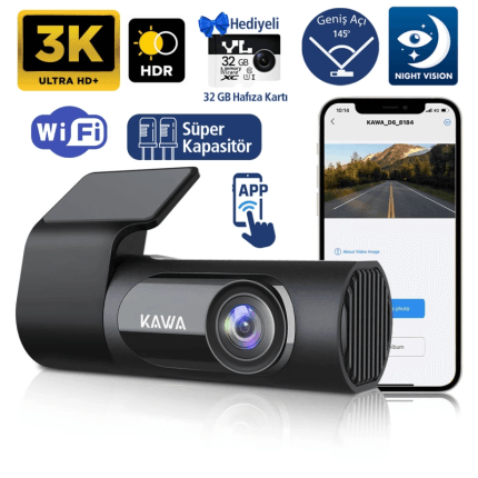 Kawa D5 2K 1296P WDR WiFi 135° Geniş Açı Lens Araç Kamerası